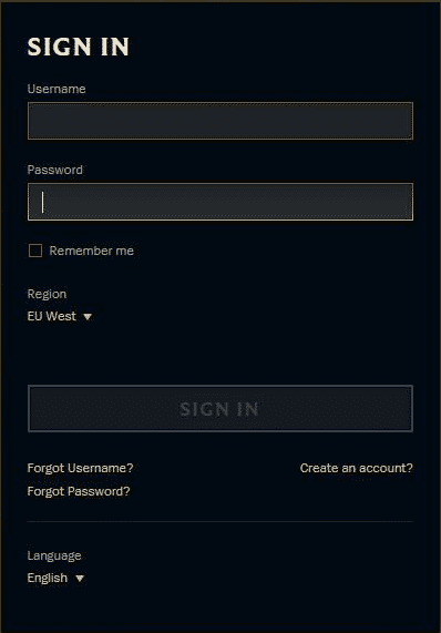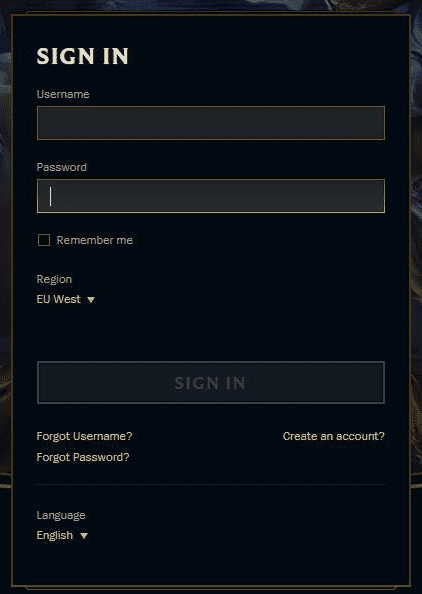 1. Login LOL website:www.leagueoflegends.com,Sign in with your Username and Password